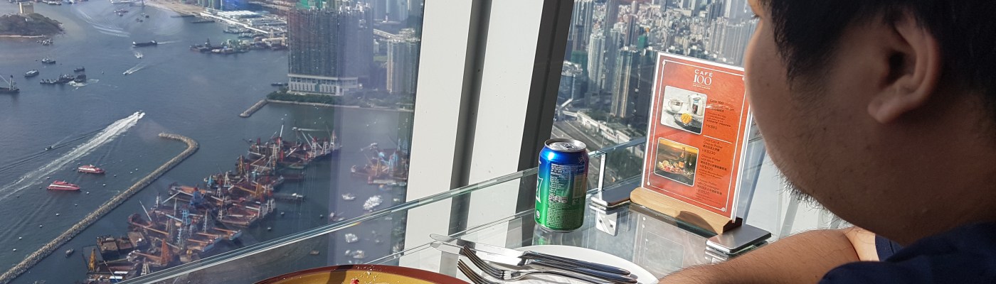 在圓方的燒肉火藏填飽了肚子,帶著被美食填滿的心上去天際100,心情格外愉悅。天際100就是台灣的101,360度的景色看得到港口的船支往返,陽光打在水面上閃閃發光,百看不膩。逛一圈會經過紀念品區以及一家咖啡廳cafe 100,主要販售法式輕食,我們點了拿鐵和鬆餅享受著美景,在香港的最後一天,過得有夠滿足。
