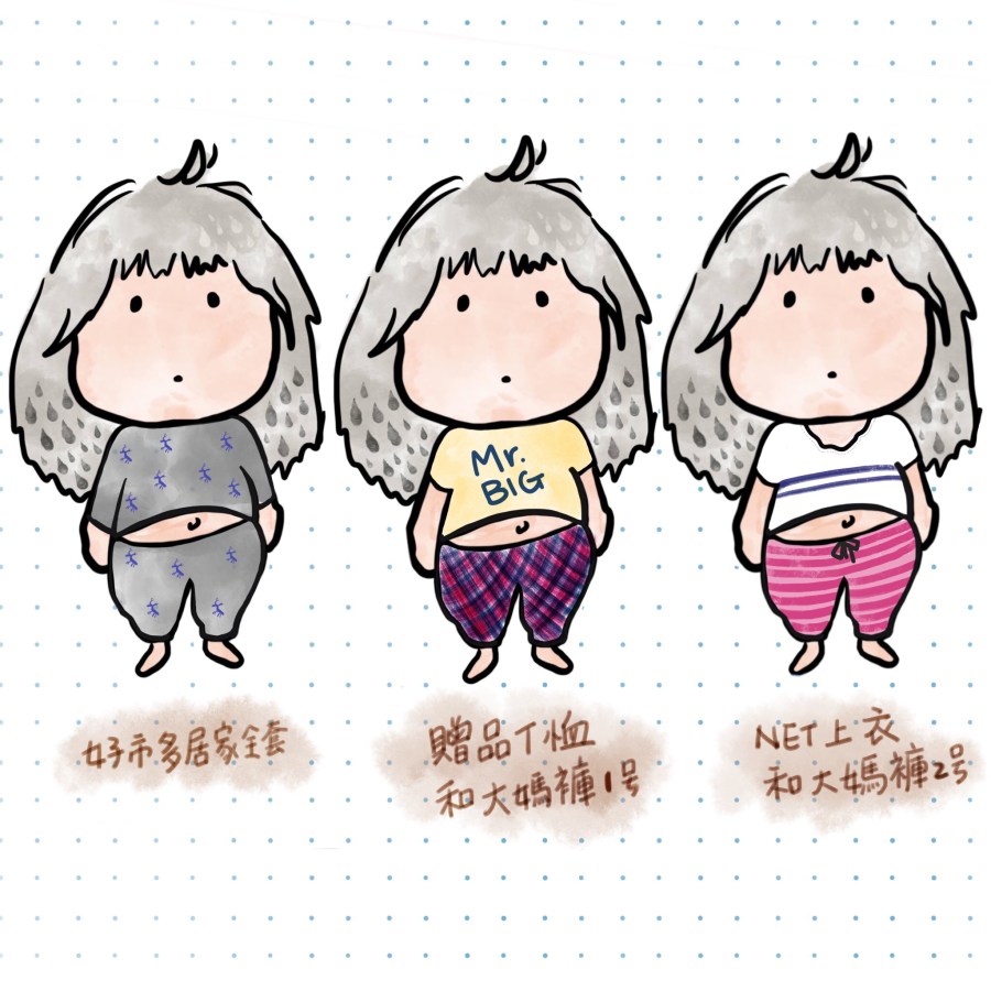 說到底,女人身為胖子的不便、怕熱、易發臭、三層肉、大媽標籤和異樣眼光,到近年來已習慣,穿著要兼顧舒適又禮貌不容易,選擇舒服的我,最常買衣服的地方是好市多的睡衣居家服區,不同布料準備兩三款,一年四季很好過啊!