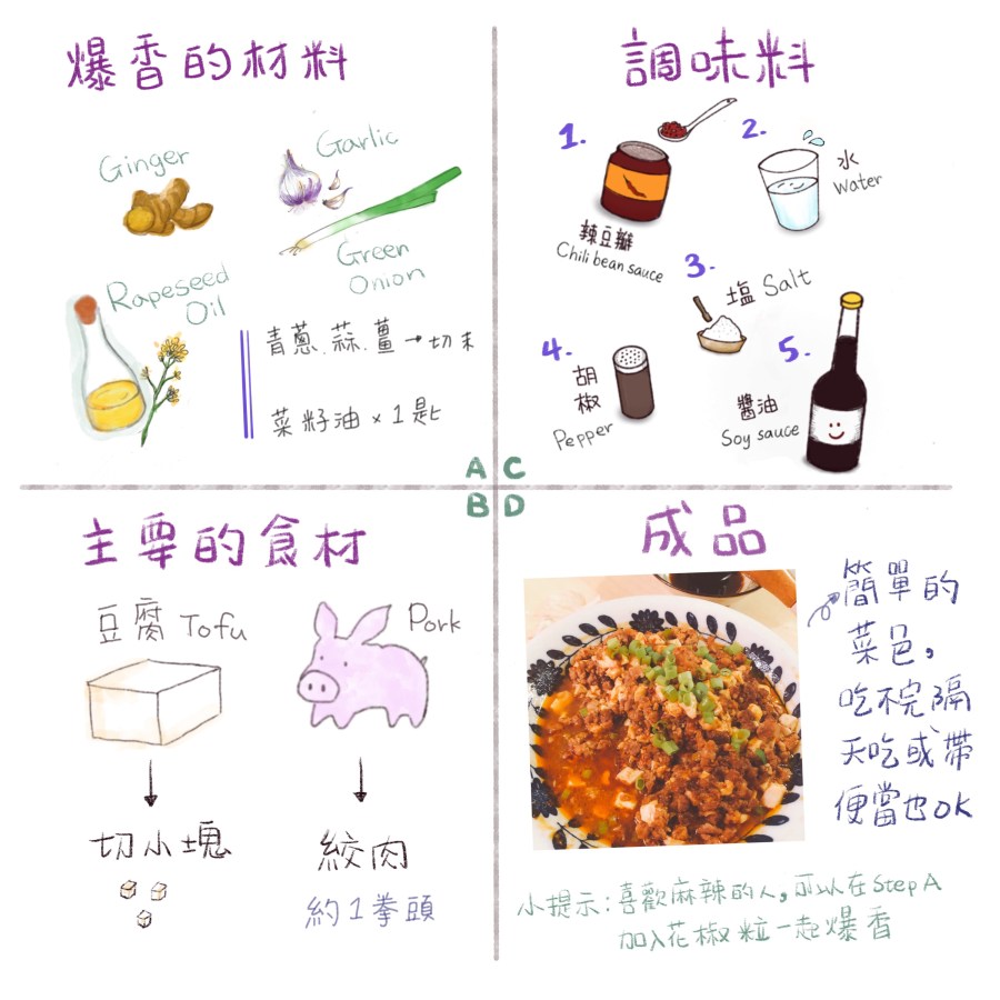 對麻婆豆腐的喜愛,是每次上川菜館一盤麻婆豆腐要配上三、四碗白飯才罷休。正統的麻婆豆腐,據說從清朝開始流傳,由一名叫陳麻婆的人所做,用的是牛肉,跟現今常見到的麻婆豆腐有所不同。