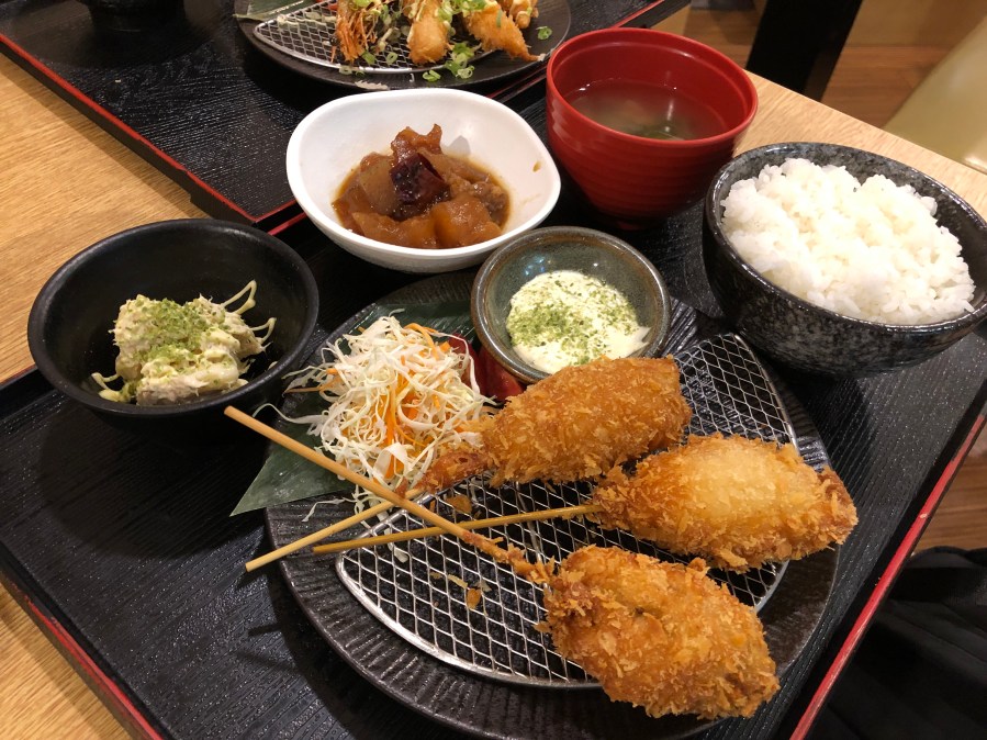 我們喝了一堆無限自取的味增湯,覺得超級滿足,走出店門一邊討論著:「如果來吃炸串吃到飽,一定要狂點蟹爪跟牡蠣啊!」不過對於開始在意起健康的胖子夫妻,想要狂吃炸物只能等減肥有成的那一天。